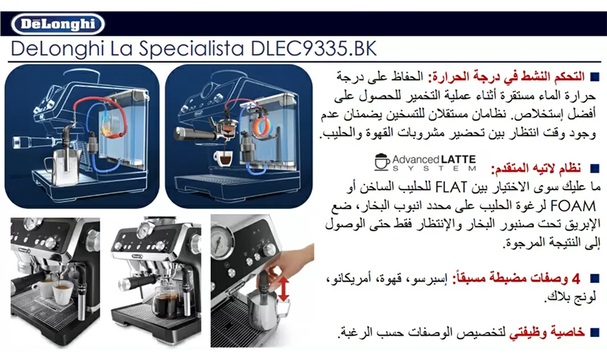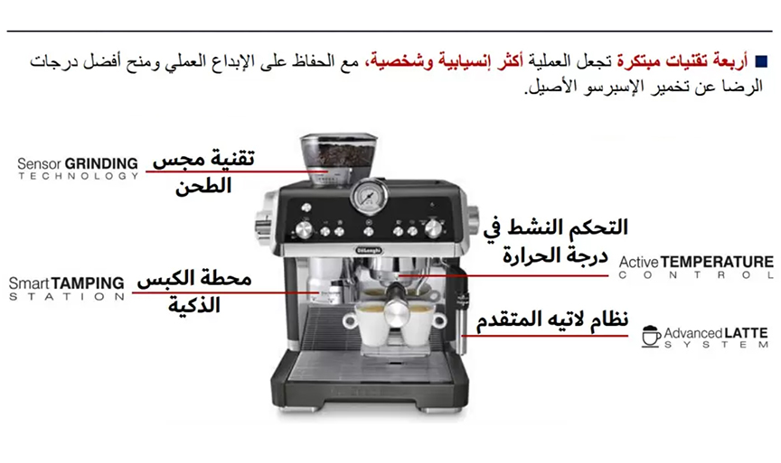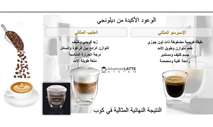 التحكم النشط في درجة الحرارة: الحفاظ على درجة حرارة الماء مستقرة أثناء عملية التخمير للحصول على أفضل إستخلاص. نظامان مستقلان للتسخين يضمنان عدم وجود وقت انتظار بين تحضير مشروبات القهوة والحليب.